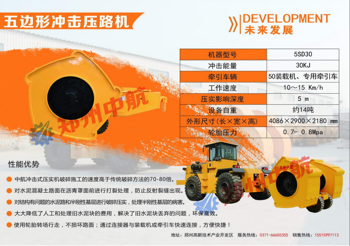 壓實(shí)能力高于震動壓路機(jī)的10~15倍、水泥路破碎速度高于傳統(tǒng)破碎方法的70-80倍,大大降低施工成本;減少路基沉降變形,提高路基整體強(qiáng)度和質(zhì)量,減少后期維修費(fèi)用。