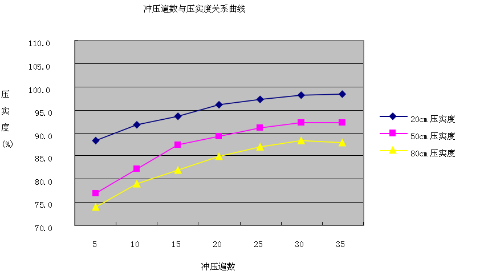 雖然沖擊壓實(shí)技術(shù)已在全國(guó)廣泛采用,但由于土質(zhì)、沖壓壓路機(jī)型號(hào),應(yīng)用條件等各不相同,其壓實(shí)效果、施工工藝、質(zhì)量控制亦不相同,因此需要在施工前修筑試驗(yàn)路段,以確定合適的施工工藝,質(zhì)量控制標(biāo)準(zhǔn)。