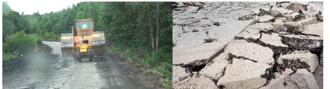 (1)打裂壓穩(wěn)。打裂壓穩(wěn)通常用于消除瀝青面層的反射裂縫。處理后的板塊長(zhǎng)度應(yīng)在30—100mm,打裂后,通過(guò)壓實(shí)有效地消除板下脫空,恢復(fù)基層對(duì)水泥混凝土板塊的支撐作用。打裂壓穩(wěn)技術(shù)成功地用于改造結(jié)構(gòu)完好、僅存在功能性破壞的普通水泥混凝土路面。使用打裂壓穩(wěn)時(shí)須考慮到板塊整體性的損失。沖擊壓實(shí)設(shè)備對(duì)水泥混凝土路面的破碎就屬于典型的打裂壓穩(wěn)。