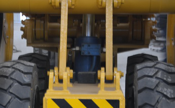 左圖是第二代舉升油缸,安裝在機(jī)架下部,用于短途轉(zhuǎn)場(chǎng)時(shí)撐起沖擊碾壓輪,活塞桿頂端頂頭處與機(jī)架完全分離,與第一代舉升油缸相比,除了安裝位置調(diào)整,優(yōu)點(diǎn):安裝方式有了改變,非硬性固定,油缸中部增添了可擺動(dòng)支架,沖擊碾壓輪在舉升過(guò)程中沿弧度方向上升時(shí),油缸整體可隨之輕微擺動(dòng),避免了活塞桿因硬性偏轉(zhuǎn)造成損傷。