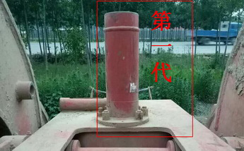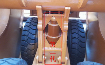 第一代舉升油缸(見(jiàn)左圖),硬性固定在機(jī)架上部,用于短途轉(zhuǎn)場(chǎng)時(shí)撐起沖擊碾壓輪,活塞桿頂端頂頭處與機(jī)架完全分離。
