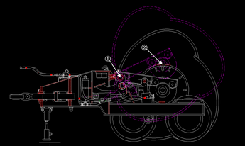 舉升油缸(見左圖),安裝在機架下部,用于短途轉(zhuǎn)場時撐起沖擊碾壓輪,活塞桿頂端頂頭處與機架完全分離,與第一代舉升油缸相比,除了安裝位置調(diào)整,安裝方式也有改變,非硬性固定,油缸中部增添了可擺動支架,沖擊碾壓輪在舉升過程中沿弧度方向上升時,油缸整體可隨之輕微擺動,避免了活塞桿因硬性偏轉(zhuǎn)造成損傷。
